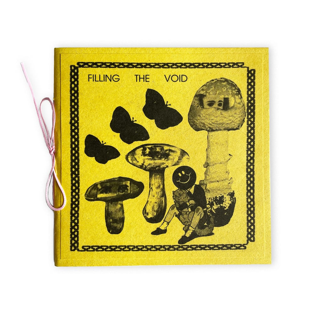 Produced as Nonmachinable 009 in a breathtaking hand-numbered edition of 40. Our most ambitious publication to date, FILLING THE VOID is 24 pages, with sturdy wrapped tagboard covers, hand-bound with pink waxed bookbinding thread.