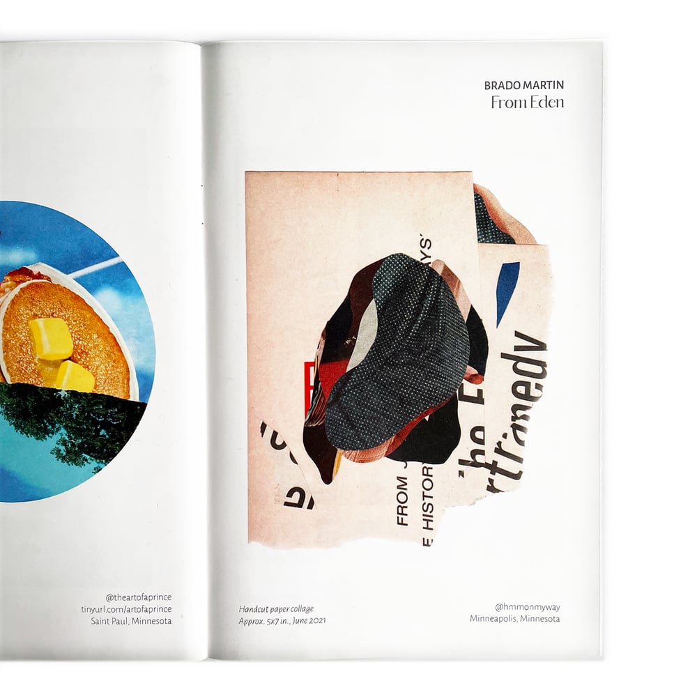 Featuring work by 24 Minnesota-based artists working in the medium of collage. Half-size zine (8.5" x 5.5"), color, 28 pages. Features a wide variety of analog and digital techniques. Edited by Twin Cities Collage Collective. Layout by allison anne.